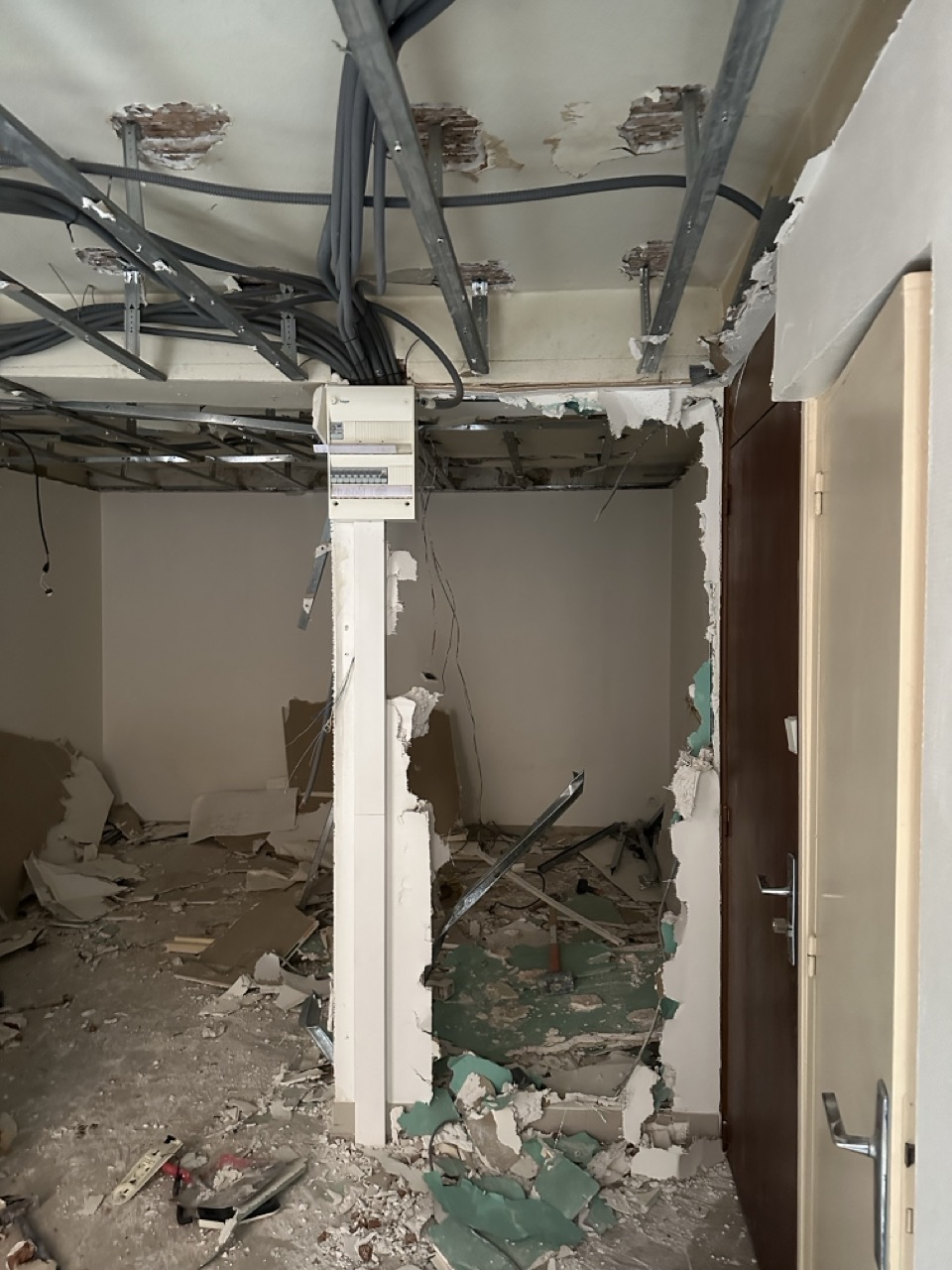 Problématique : Comme tout est à reprendre, on propose de repartir de zéro pour redistribuer les espaces et améliorer la fluidité des mouvements. On doit ouvrir entre la pièce de vie et la chambre, réintégrer le ballon d’eau chaude, qui à l’heure actuelle est au sous-sol, et trouver également une place pour le lave-linge.