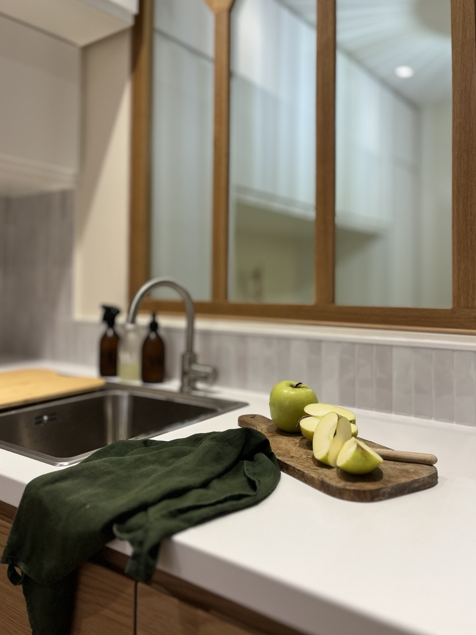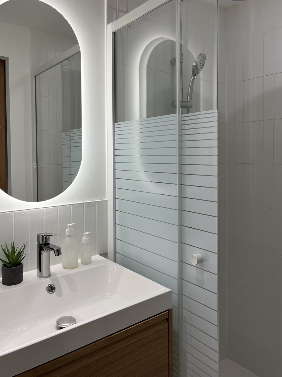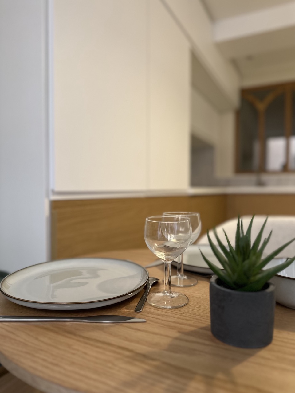 Résultat : Transformé avec soin, cet appartement est devenu un véritable cocon chaleureux et accueillant, offrant tout le confort dont on peut rêver. Pour maximiser la luminosité, une élégante verrière en bois inspirée du style Art Déco a été installée entre le séjour, la cuisine, et la chambre. Ce choix a été renforcé par des portes entièrement vitrées, diffusant la lumière naturelle dans tout l’espace.