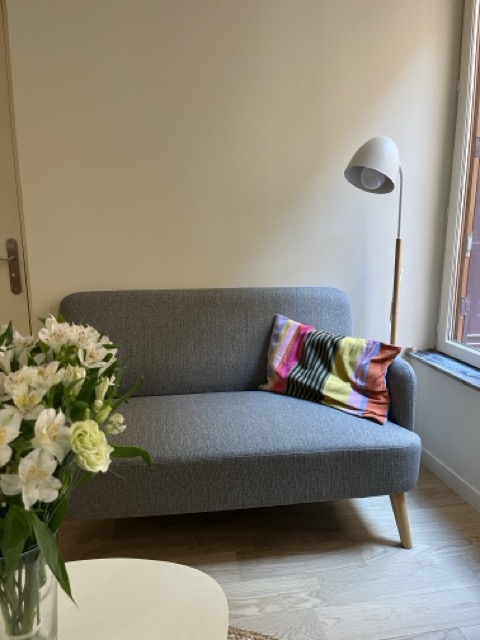 Atouts : il s’agit d’un petit appartement au rez de chaussée d’un immeuble ancien qui donne sur cour donc très calme et bénéficiant de deux grandes fenêtres.